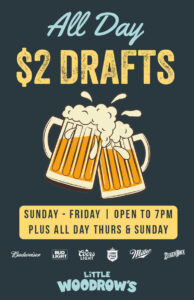 $2 Select Draft Beers | Mon – Fri | 11am – 7pm