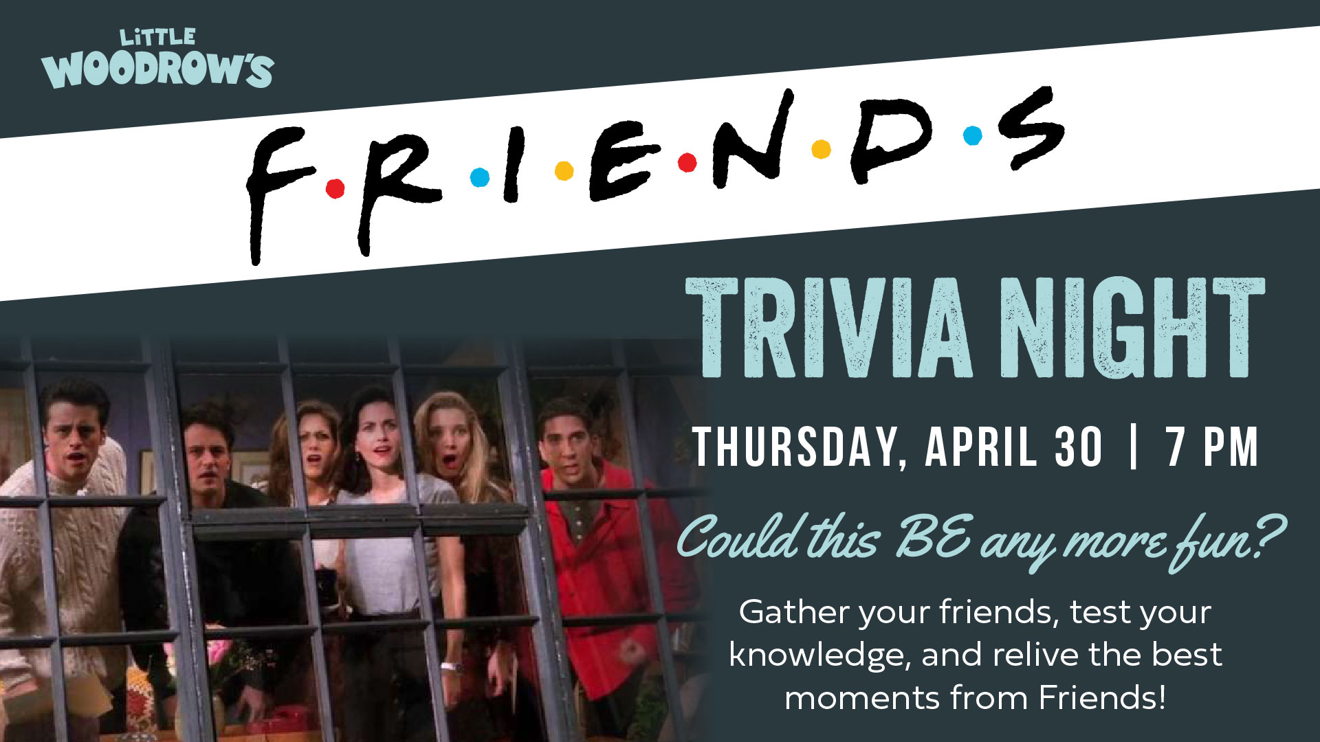 Grab your friends and join us for Friends-themed trivia, test your knowledge and see which team is the real Central Perk champion