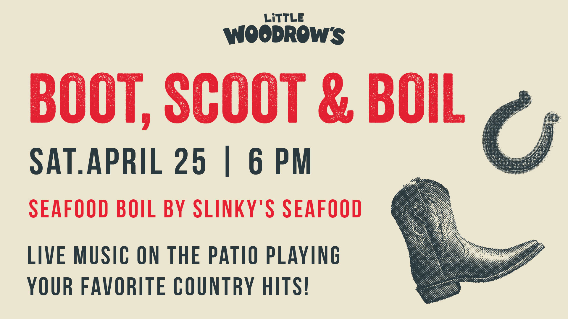 Join us for a night of live country music on the patio at 6 PM, featuring a boot-scootin’ country cover band bringing all the yee-haw vibes.