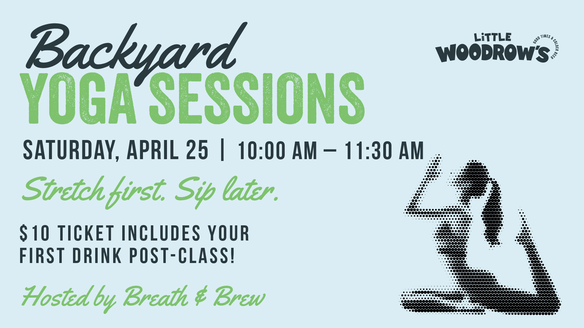 Start your Saturday the right way with a guided outdoor yoga flow on the patio, then stick around for a well-earned drink after.