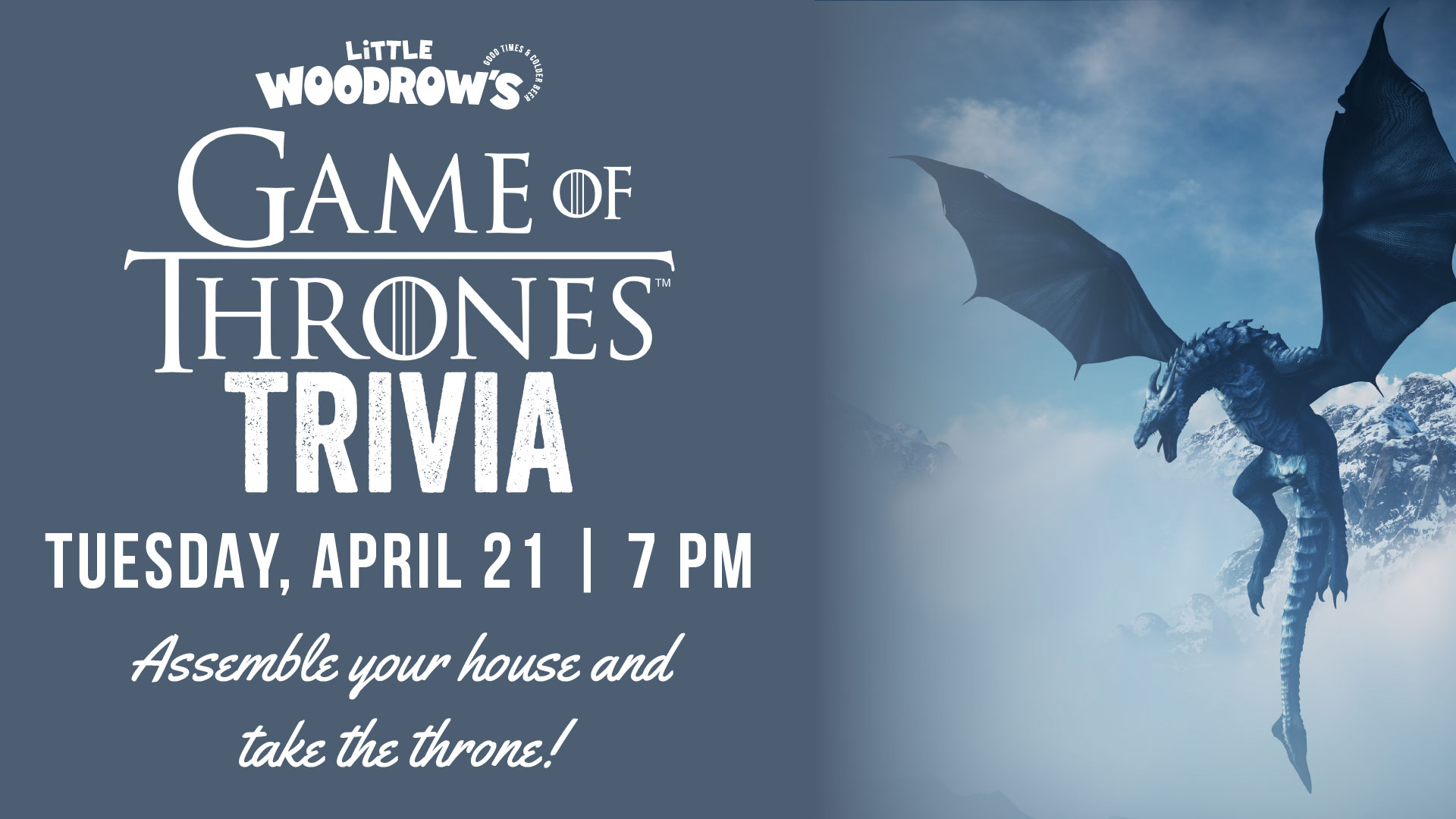 Do you know your Starks from your Lannisters? Can you name every ruler who sat on the Iron Throne? It’s time to prove your loyalty and your knowledge at Game of Thrones Trivia Night.